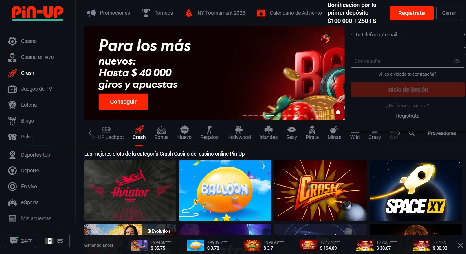 Al registrarte en el sitio oficial de Pinup, obtendrás acceso a todas las funciones del casino, incluyendo apuestas en vivo y en deportes virtuales. Los usuarios no registrados no pueden disfrutar de estas ventajas exclusivas.